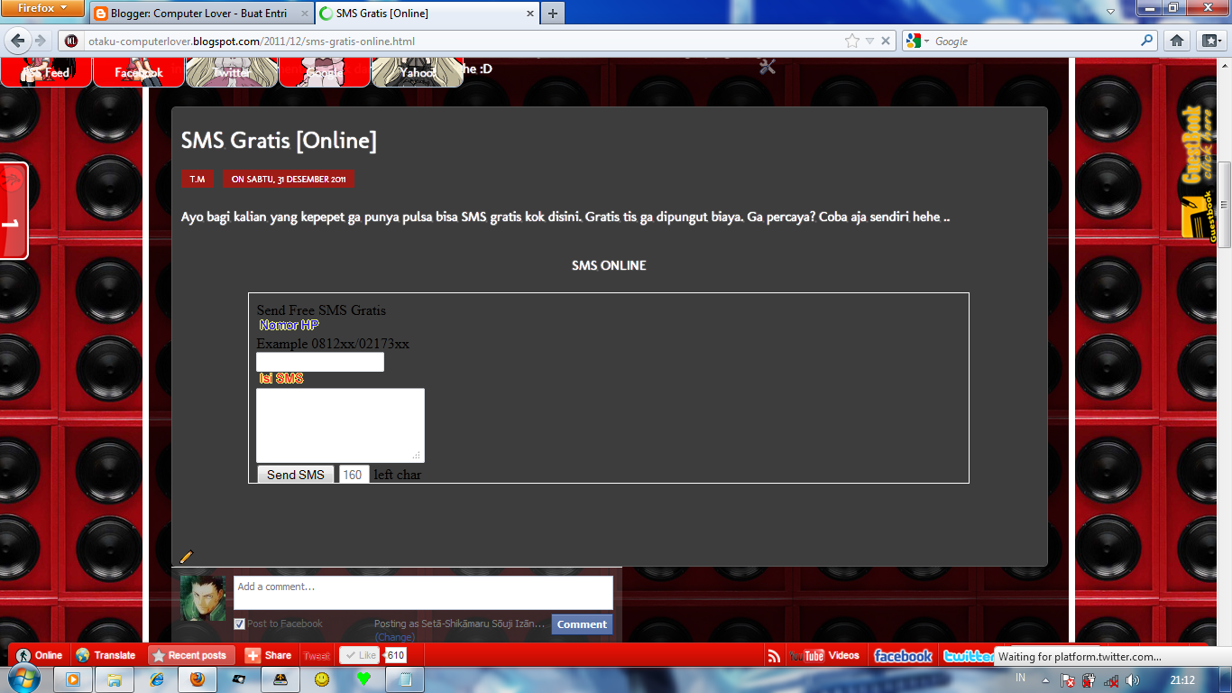 Cara Menambahkan Gadget SMS Gratis Di Blog